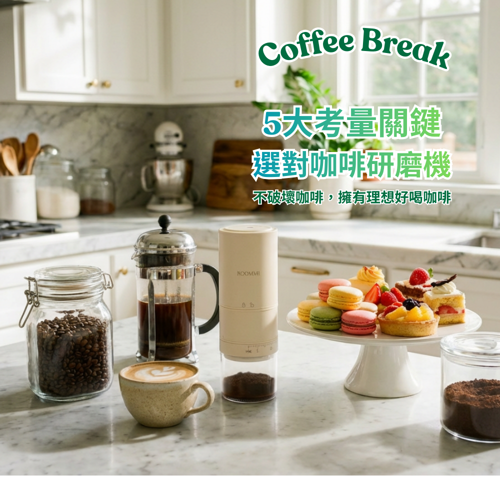 喜歡喝咖啡、有在研究咖啡的生活品味家很多都建議,如果可以選擇「現磨現沖」為最優!因為研磨後的咖啡粉,表面積大增,香氣和風味會快速流失,若磨一大罐咖啡粉或買現成的咖啡粉慢慢沖泡,容易無法品嚐到咖啡的好風味,因此建議在沖煮前20 分鐘內再研磨咖啡豆。 此外,磨豆機對咖啡風味影響巨大,甚至比咖啡豆和沖煮器具更關鍵。磨豆機主要透過研磨的粗細均勻度、顆粒大小(影響萃取速度和物質溶解)以及研磨過程中的熱量和轉速(影響風味細膩度與香氣)來決定咖啡風味。粗細不均或過熱,會導致過萃(苦澀)或萃取不足(平淡),因此選對磨豆機並掌握研磨技巧是沖出好咖啡的關鍵。 選磨豆機的5大考量關鍵電動或手動追求效率的人可以選電動款式,達到一次研磨量較大、省時省力的目的;追求生活品質與趣味的人可以選手動款式,研磨過程較安靜、造型與設計選擇較多元,也可慢慢體驗研磨樂趣,享受咖啡香慢慢釋放的過程。* 電動磨豆機:優點 - 效率高、省力、品質穩定,可一次研磨比較大量的咖啡豆,適合追求便利者缺點 - 價格相對比較高,運轉聲大、清潔比較複雜* 手動磨豆機:優點 - 運轉聲比較小,可體驗研磨樂趣,設計款式比較多元,不會受有沒有電限制,適合追求生活品味者缺點 - 需要費力費時研磨,一次研磨量比較少研磨刀盤選擇 - 刀片式 v.s 刀盤式(磨盤式)刀盤式(磨盤式)優於刀片式。因為刀片式容易研磨不均勻,顆粒大小落差大,刀盤式(磨盤式)可以低溫均勻切割豆子,達到均質理想的咖啡顆粒狀態。研磨的粗細度是否可以是用你的沖煮方式每種咖啡煮法都有其適合搭配的咖啡粉粗細,靠壓力沖煮的沖煮方式需要搭配更細緻的粉末* 粗研磨:顆粒大小約比粗砂糖大,適合搭配冰滴壺沖煮* 中研磨:顆粒大小約與粗砂糖差不多,適合搭配法式濾壓壺、手沖壺沖煮* 細研磨:顆粒大小約與細砂糖差不多,適合搭配手沖壺、虹吸壺、摩卡壺沖煮* 極細研磨:顆粒大小約與麵粉差不多,適合搭配義式咖啡機、摩卡壺沖煮耐用度許多電動磨豆機的研磨刀盤選用陶瓷刀盤為材料,但其實不鏽鋼材質會是更好的選擇。因為不鏽鋼材質的研磨刀盤可以更快速、穩定切割咖啡豆,讓顆粒大小更均勻,也因為材質更堅硬,耐用度與堅固度更好,能使用的期限更長;此外,不鏽鋼材質的研磨刀盤也比較不會卡粉、清潔上也比較輕鬆容易!但若在意價格高低者,也可先選陶瓷刀盤先使用看看預算考量磨豆機從幾百道萬元都有,可以依照功能需求、預算、外型等去選擇。 電動磨豆機推薦 - Premium 職人電動磨豆機 (點擊逛逛)滿足5大選擇考量: #電動省時省力 + #刀盤式(磨盤式)低溫研磨咖啡顆粒均勻 + #研磨的粗細度粗到細都有 + #多款咖啡沖煮工具都可用 + #不鏽鋼錐形刀盤耐用度高清潔易 + #價格千元初平易近人其他產品細節介紹1. 專業級不鏽鋼錐形磨芯/刀盤,耐磨、上下聚攏推磨顆粒更一致、刷一刷就乾淨容易清潔、不怕因研磨發熱變形2. 38檔粗細研磨選擇,粗研磨到極細研磨都可達成3. 直觀操作,一鍵啟動,研磨完自動停止4. 滿電可磨12-20杯咖啡,滿足戶外露營、外出旅行、多人分享需求5. 不用插電,隨身攜帶隨處用
