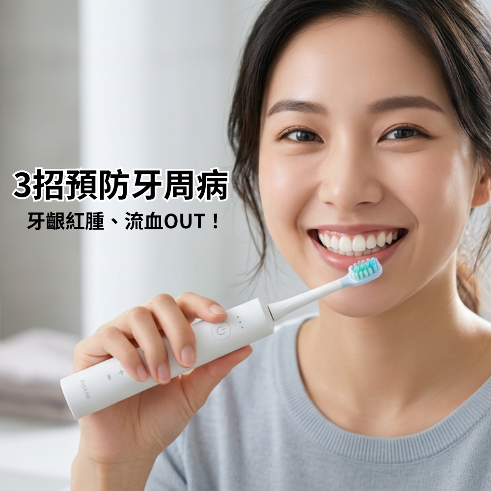 根據衛生福利部統計,台灣人牙周病盛行率高達8成,其中有5成處於嚴重狀態。而且牙周病常因早期無明顯疼痛而遭輕忽,漸漸隨年齡增長與長時間無視而變嚴重。 牙周病主要成因是口腔清潔不佳,導致牙菌斑產生、牙結石堆積,若忽視不治療或不處理容易會引發牙齦紅腫、流血,最終導致牙齒鬆動、脫落。預防牙周病第1招:定期口腔檢查 全民健保有給付給滿12歲民眾每6個月洗牙一次,定期給牙醫清除自己難以清除的牙結石可以減少菌體積累。 預防牙周病第2招:維持健康生活型態 戒菸與提升免疫力可以降低牙周病獲得風險,並避免更加嚴重與加速破壞。若是糖尿病患者也要注意控制血糖,減少牙周病惡化。 預防牙周病第3招:正確刷牙、徹底清潔 正確且規律的刷牙是預防牙周病最重要的方法!而貝氏刷牙法(Bass Method) 是牙醫公認最有效預防牙周病與齲齒的刷牙技巧! 什麼是貝氏刷牙法? 貝氏刷牙法的核心在於將軟毛牙刷以「45度角」輕靠牙齦溝,透過短距離水平震動清潔。 貝氏刷牙法「321」口訣與步驟 1. 3面都要刷:牙齒分為頰側(外)、舌側(內)、咬合面,需依序刷過。 2. 2顆一起刷:刷毛對準牙齒與牙齦交接處,呈45-60度角,每次清潔約兩顆牙。 3. 10下輕刷:在牙齦溝輕震動(短距離水平來回)約10次,力道輕柔,切勿過猛以免傷牙齦。 除了貝氏刷牙法,刷牙時可以搭配使用含氟量超過1000ppm以上的牙膏做清潔,並用牙線或牙間刷確認容易被忽略的齒縫是否有清潔乾淨! 若你屬於那種生活很忙容易把刷牙「簡單化」的人,或是容易偷懶或不確定自己是否有正確刷乾淨牙齒的人,不妨用好工具幫你完成牙齒清潔,避免口腔小問題變成生活大問題! 好工具1:智慧Pro掃震電動牙刷 (點擊逛逛) 60°擺動幅度,輕鬆完成「貝氏刷牙法」,口腔變乾淨、擁有健康與好口氣! 。4檔模式可調節:敏感模式、日常清潔、亮白模式、強勁模式 。2種刷頭自由選:標準日常、加強清潔 。1200mAh,可續航45天 。IPX8防水等級 。Type-C充電 好工具2:Clean plus 沖牙機 (點擊逛逛) Clean plus 沖牙機讓你簡單清除齒縫與口腔死角食物殘渣與髒汙,讓口腔更清新,口氣更加分。維持牙齒與牙齦健康,預防蛀牙、消除口腔異味! 。6檔清潔模式可調節:標準、強力、變頻、輕柔、護齦、敏感 。4種噴頭自由選:舌苔噴頭、牙周噴頭、矯正器專用噴頭、標準噴頭 。250ml大水箱 。2000mAh大容量電池 。Type-C充電 。IPX7防水設計