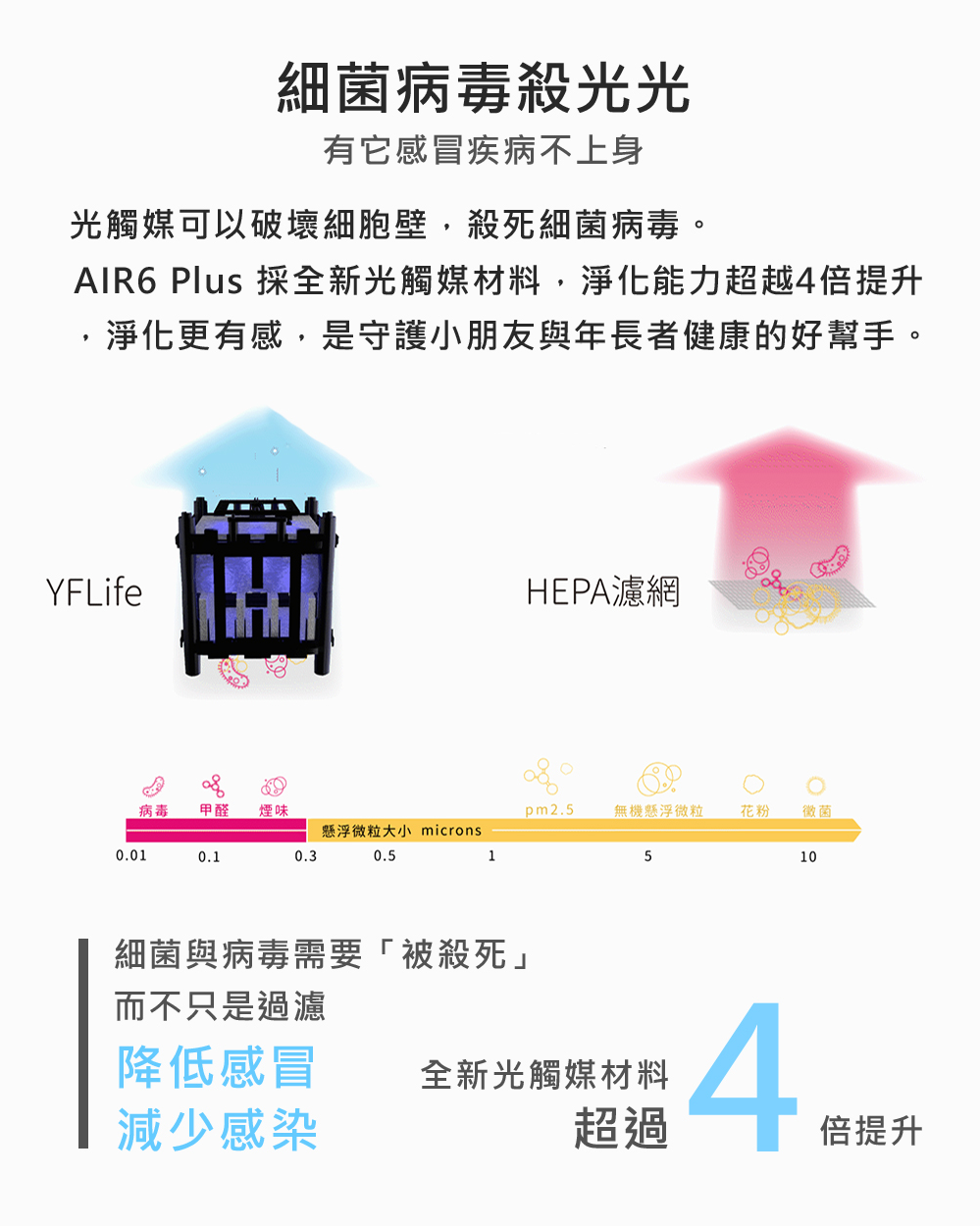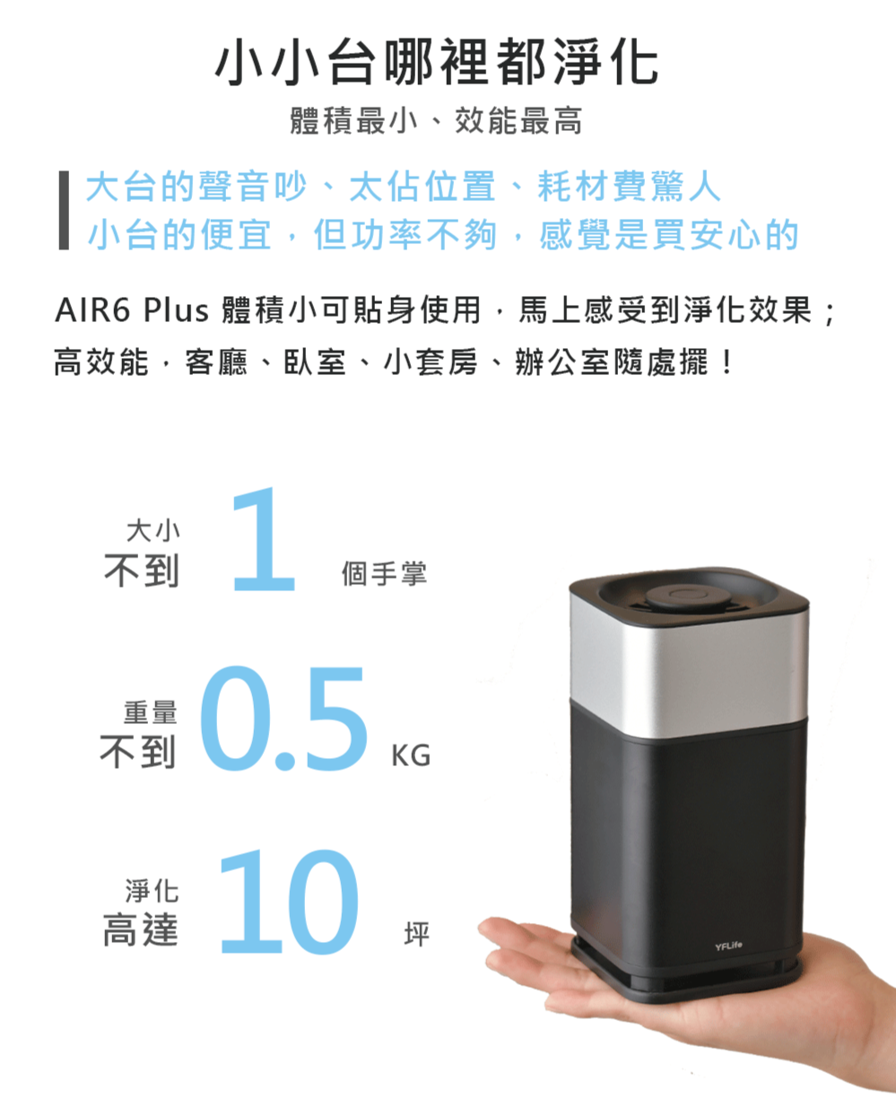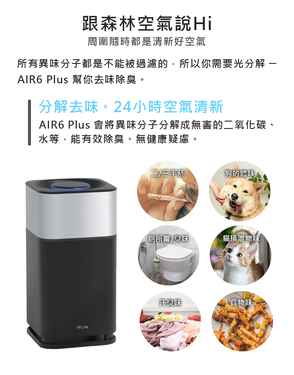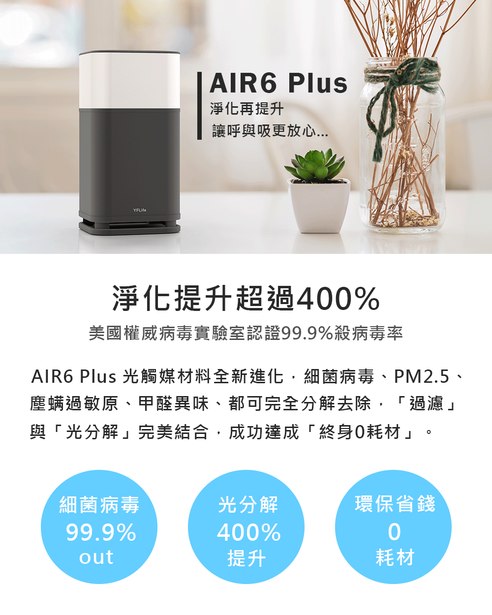 YFLife 圓方生活|AIR6 Plus光觸媒空氣淨化器,通過美國FDA認可權威病毒實驗室實驗證明殺病毒率99.9%,廣受網紅網友好評,給你簡單清新好空氣!