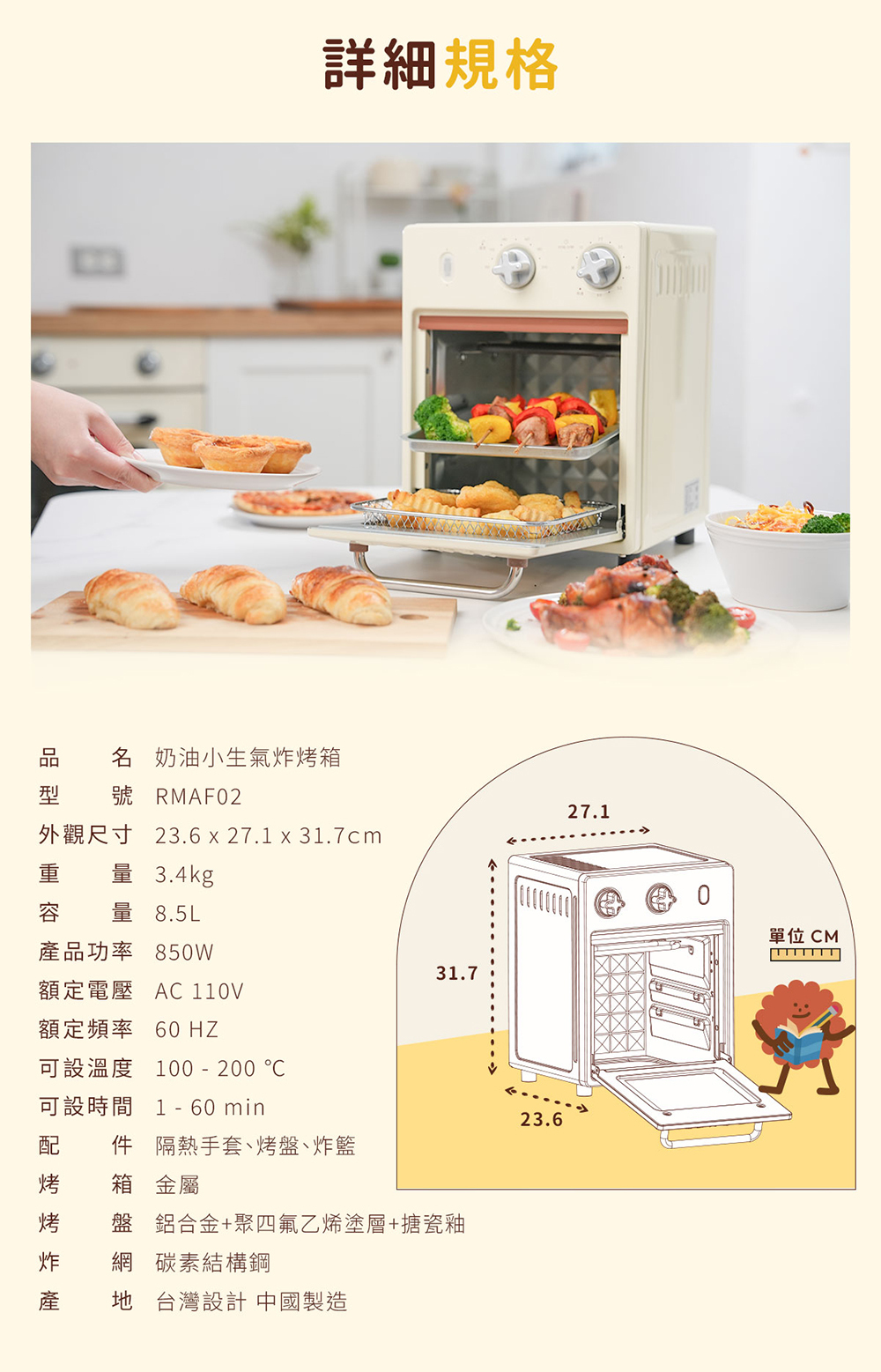 。8.5L大容量雙層同烤:烤盤、炸籃可同時料理烘烤