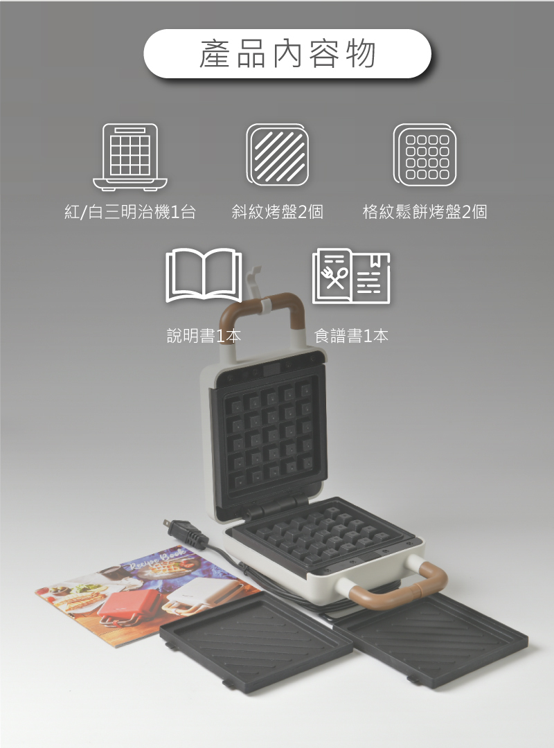 Roommi好簡單三明治機讓你3分鐘美味料理輕鬆上桌!兼具熱壓三明治機、鬆餅機的功能,輕輕一合,早餐三明治、熱狗、肉片、鬆餅就可完成,讓媽媽與小資族的你不用鍋子與瓦斯爐也能享受料理DIY的樂趣。