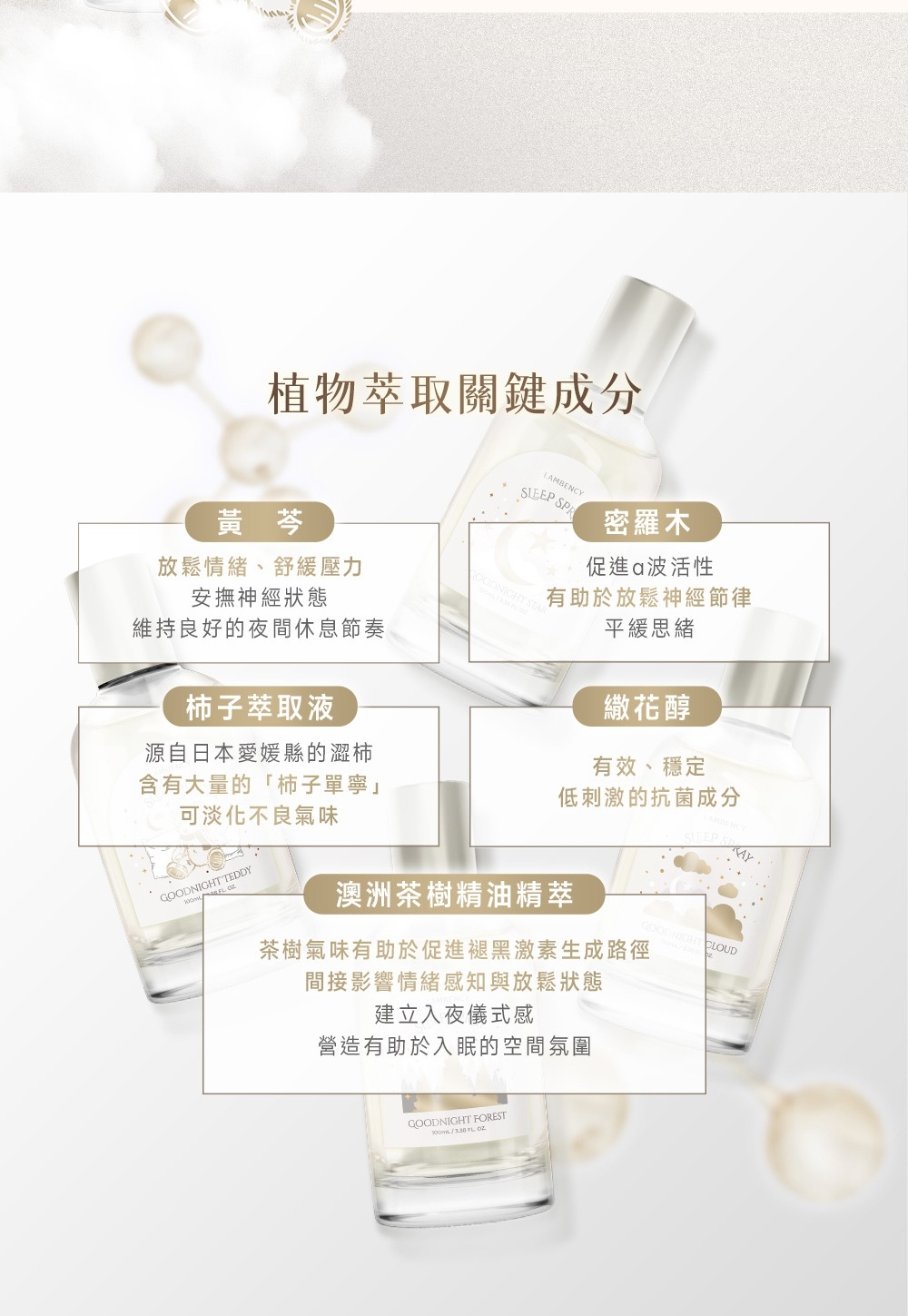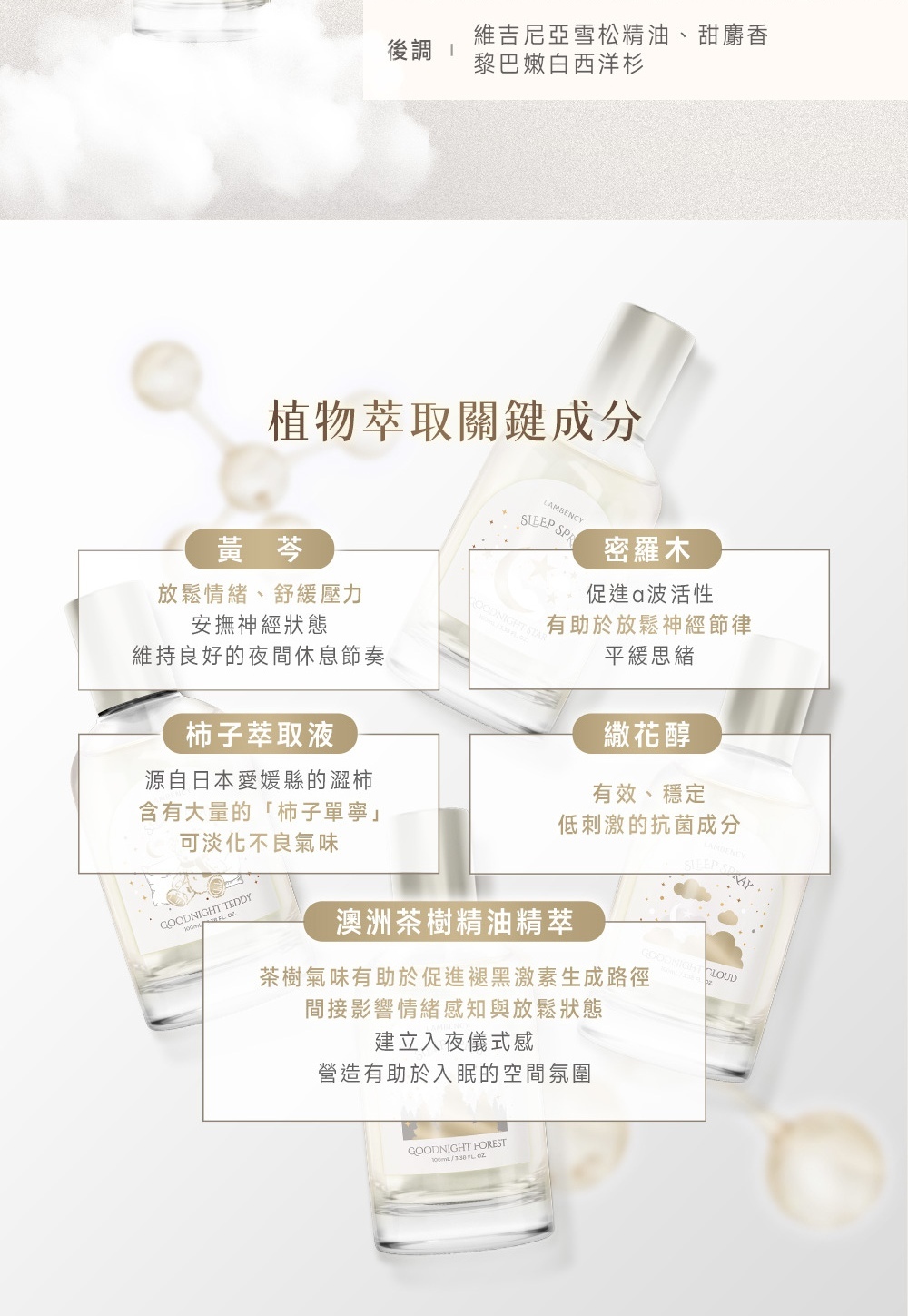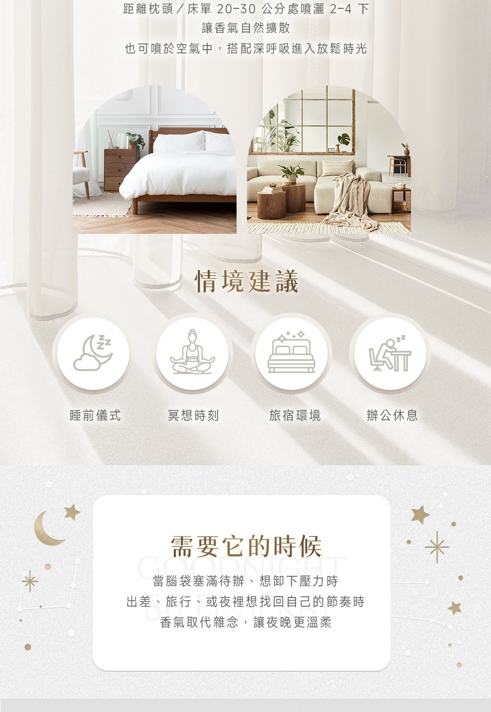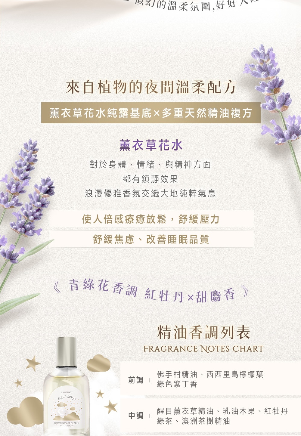 柔軟香氣營造如夢似幻的溫柔氛圍,好好入睡~