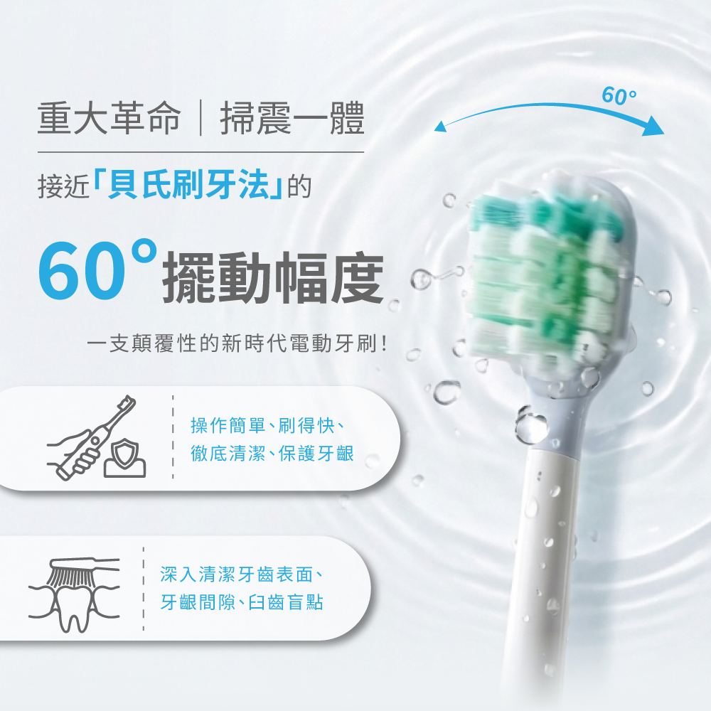 60°擺動幅度,輕鬆完成「貝氏刷牙法」